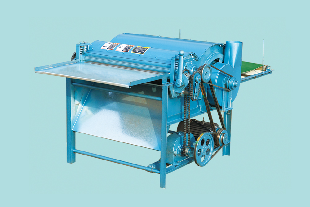 本機(jī)適用于舊棉胎、短絨、舊羊毛衫、化纖等開松、除塵、成卷。(一般開松2-3遍才能達(dá)到疏松效果)